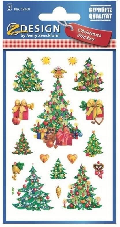 AVERY Zweckform 52401 Naklejki świąteczne 24 choinki z detalami (papierowe naklejki świąteczne, samoprzylepne dekoracje świąteczne na kartki, prezenty, DIY) 3 arkusze po 10 naklejek każdyInformacje o tym produkcieZawartość: 24 wysokiej jakości, pięknie zaprojektowane papierowe naklejki choinkowe …