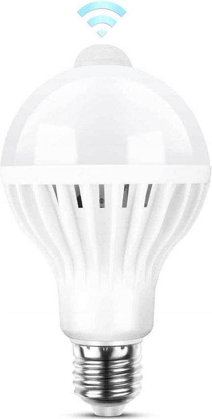 Żarówka 12 W z czujnikiem ruchu Cechy Produktu: Energooszczędna żarówka LED Moc: 12 W Gwint: E27 Żarówka wyposażona w czujnik ruchu, dzięki czemu można zaoszczędzić czas i energie Żarówka po wykryciu ruchu świeci około 25 sekund Wyposażona w diody SMD 2835 Napięcie zasilania: 230 V Barwa światła: Biała zimna Kąt świecenia: 220 stopni Kąt wychwytywania ruchu: 120 stopni Wysokość całkowita: 120 mm Średnica: 65 mm