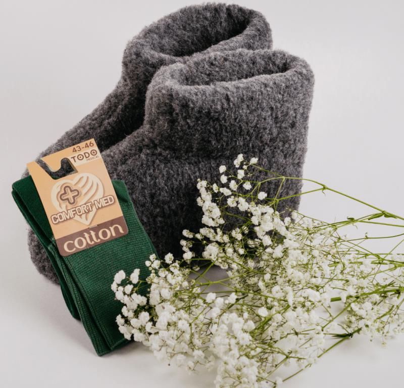 Zestaw dla Seniora - Domowe Ciepło, Bambosze 100% MERINO i Skarpety Bezuciskowe Kraków