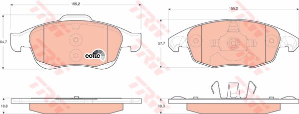 HAM.KLOCKI /P/BERLINGO 08- Numer części: GDB1690 Parametry: Ograniczenia producenta: ATE Długość [mm]: 155,2 Wysokość 1 [mm]: 64,7 Wysokość 2 [mm]: 57,7 Grubość 1 [mm]: 18,8 Grubość 2 [mm]: 18,3 Styk ostrzegawczy o zużyciu: nieprzygotowany dla wskaźnika zużycia Oznaczenie kontrolne: E9 90R - …