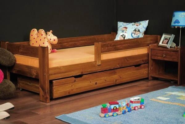 Zestaw Łóżko Ninio 70x160 orzech + materac Kokos-Gryka + szuflada. Informacje: Łóżko Ninio 70x160 kolor orzech. Łóżko wykonane w całości z drewna sosnowego. Grubość materiału 2,7 cm. W cenie łóżka wliczony jest wkład drewniany pod materac. Stabilna konstrukcja z drewna sosnowego dostarcza niezwykły komfort snu. Nowoczesne proste wzornictwo Łóżko jest lakierowane lakierem bezbarwnym metodą natryskową oraz barwione na kolor. Barierka może być zamocowana z prawej lub lewej strony łóżka. Mebel wysyłany w paczce do samodzielnego montażu wraz z instrukcją oraz akcesoriami. Wymiary łóżka : Szerokość wewnętrzna 70 cm długość wewnętrzna 160cm szerokość zewnętrzna 76 cm długość zewnętrzna 168 cm wysokość łóżka przy głowie 60 cm wysokość łóżka przy nogach 60 cm Szuflada pod łóżko Ninio 158 cm. Wykonana w całości z drewna sosnowego. Dno wykonane jest z płyty pilśniowej. Jeździ po po podłodze na kółeczkach , kółka nie niszczą podłogi. Szuflada jest lakierowana lakierem bezbarwnym metodą natryskową Mebel wysyłany jest w paczce do samodzielnego montażu wraz z instrukcją oraz akcesoriami. Wymiary szuflady : szerokość 158 cm wysokość 18,5 cm głębokość 70 cm Materac Pianka-Kokos-Gryka 160x70 TYP: DWUSTRONNY PIANKA + KOKOS + GRYKA TWARDOŚĆ: DWIE STRONY TWARDOŚCI (TWARDA I ŚREDNIO TWARDA) WYSOKOŚĆ: OK 10CM Zalety: wkład z płyt kokosowych zapewnia odpowiednie podparcie ciała na całej długości łuska gryczana zawiera związki taninowe chroniące przed roztoczami i szkodliwymi drobnoustrojami, idealna dla alergików, nie nagrzewa się pianka poliuretanowa T25 o gęstości 25kg/m3 pokrowiec ściągany z możliwością prania