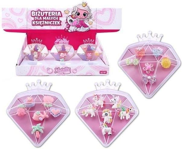 Zestaw pierścionków Natalia mix Przedstawiamy różnorodny miks wzorów pierścionków Natalia, dostępnych w ofercie. Towar wysyłany jest losowo, dzięki czemu każdy komplet może być nieco inny. W kolekcji znajduje się trzy wzory do wyboru. Cena dotyczy jednej sztuki. Zestaw pierścionków Natalia został zapakowany w efektownym opakowaniu w kształcie diamentu. W jednym takim diamencie znajdują się aż 6 pierścionków, co czyni go idealnym prezentem dla miłośniczki biżuterii czy dla siebie samej. EAN: 5901811121821