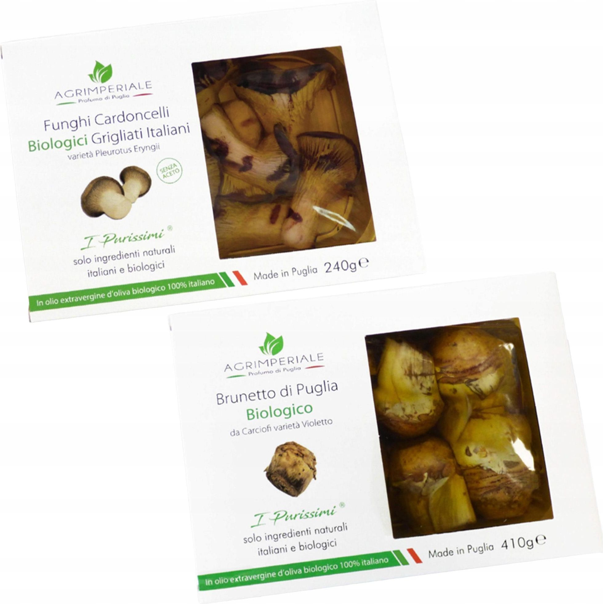 Produkty Agrimperiale pochodzą z certyfikowanych pól organicznych w krótkim łańcuchu dostaw, kilka kilometrów od zakładu przetwórczego i poddawane są kontroli wejściowej w celu sprawdzenia, czy nie zawierają substancji lub pozostałości niedozwolonych metodą ekologiczną. Wyselekcjonowane z najlepszych pól Apulii, marynowane we włoskim i organicznym soku z cytryny i pomarańczy, warzywa te mają naturalny smak, nie zmącony przyprawami ani innymi składnikami. Grillowane warzywa nie są po prostu nacinane, ale pieczone w specjalnym piekarniku. Proces ten trwa około 30 minut i powoduje utratę masy o prawie 40%, co nadaje warzywom bardzo przyjemny smak. Jedz codziennie roślinnie, zdrowo i włosko dzięki naszym doskonałym produktom organicznym! Agrimperiale działa na rzecz zapewnienia bezpieczeństwa żywności na bardzo wysokim poziomie, dzięki zaawansowanym technologicznie systemom i ścisłej kontroli jakości, od pola po zapakowanie produktu. Wszystkie produkty są w 100% włoskie, naturalne i organiczne. Składniki: 60% karczochów*, 39% oliwy z oliwek Extra Virgin*, ocet winny*, sok z cytryny*, sok pomarańczowy*, sól. *z upraw ekologicznych Brunetto di Puglia to wyjątkowy i zarejestrowany znak towarowy karczochów o bardzo szczególnych właściwościach, produkowany wyłącznie przez Agrimperiale SpA. Inspirowany starożytnymi recepturami, jest to produkt w 100% naturalny, bez dodatków chemicznych. Jest ciemny, chrupiący i ma słodki smak. Karczochy pochodzą z apulijskich pól certyfikowanych ekologicznie, w krótkim łańcuchu dostaw, kilka kilometrów od zakładu przetwórczego i poddawane są kontrolom na polu i podczas przetwarzania, w celu sprawdzenia, czy nie zawierają substancji lub pozostałości niedozwolonych metodą ekologiczną. Usytuowanie zakładu produkcyjnego na terenach uprawnych oraz innowacyjne techniki produkcji pozwalają uzyskać bardzo niski koszt w porównaniu do jakościowej doskonałości produktu. Warzywa są następnie pakowane przy użyciu wyłącznie naturalnych i w 100% włoskich produktów. Zdobycie Brunetto di Puglia zajmuje średnio od 24 do 48 godzin.