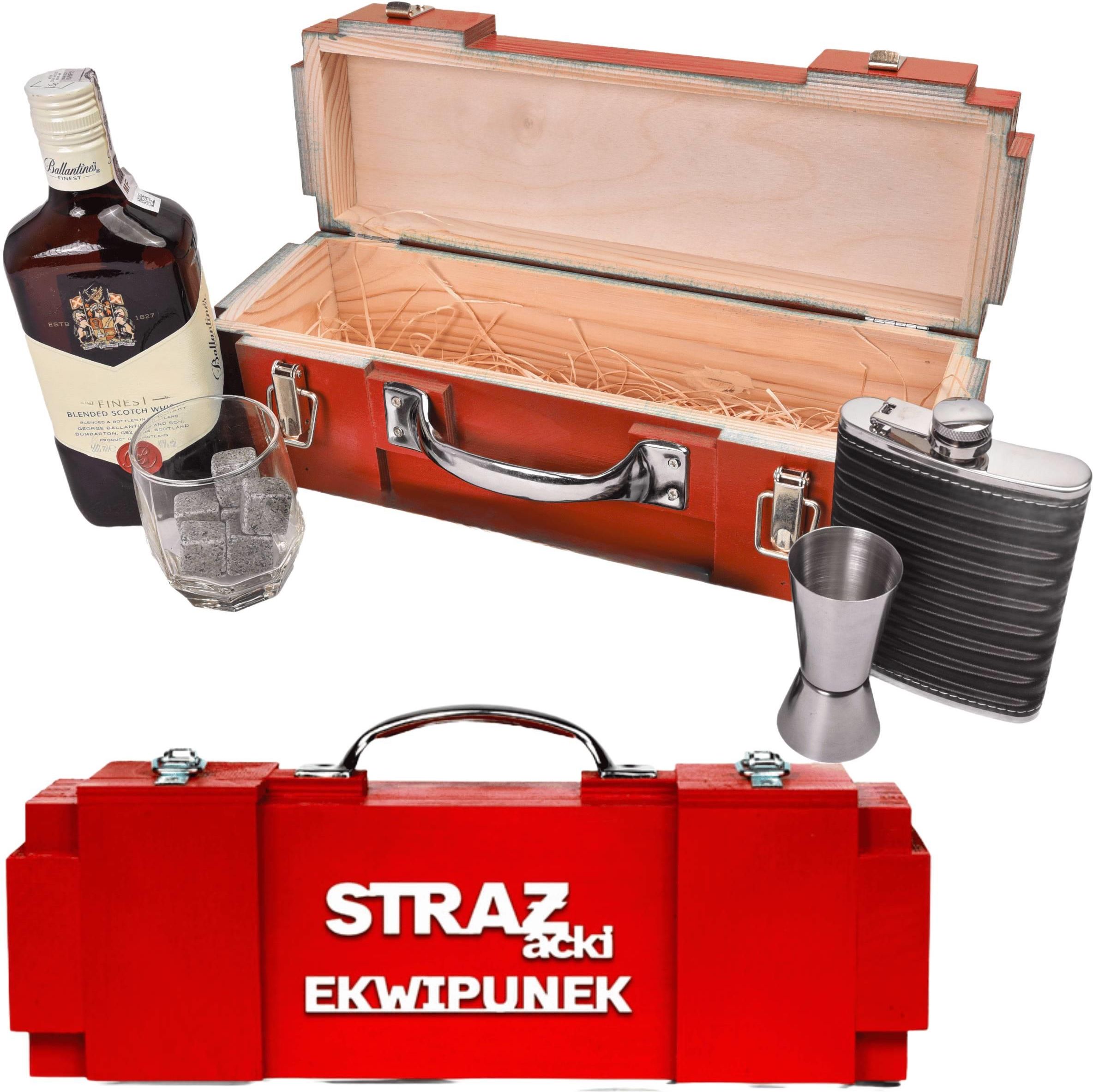 Zestaw Premium Prezent Dla Strażaka Ospurodziny Skrzynka Na Alkohol Z Piersiówka Kostki Szklanka I Kieliszek Masywna Drewno Solidna Kraków