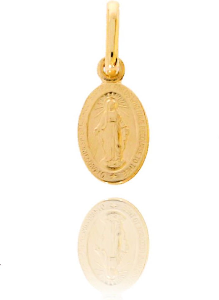 Złoty medalik wykonany ze złota próby 585 (14 k) Medalik został wykonany we Włoszech z najwyższej jakości materiału. Idealny prezent z okazji urodzin, imienin, rocznicy, walentynek, świąt i wielu innych okoliczności. Szerokość: ok. 6,0 mm Wysokość bez zawieszki: ok. 8,0 mm Wysokość z zawieszka: ok. 15,0 mm Waga: ok. 0,30-0,40 g Rodzaj zapięcia: - Wszystkie nasze produkty wykonane są z najwyżej jakości złota próby 585 ( 14k ) Potwierdzeniem jest metka oraz nabity imiennik lub cecha probiercza (cecha dla produktów powyżej 1 g zgodnie z ustawą o prawie probierczym). Cudowny medalik jest najsłynniejszym i najczęściej noszonym medalikiem na całym świecie. Pierwotna nazwa medalika to: Medalik Niepokalanego Poczęcia Najświętszej Maryi Panny. „ci którzy noszą Cudowny Medalik dostąpią wielkich łask, szczególnie jeśli go będą nosili na szyi. Tych, którzy we mnie ufają, wieloma łaskami obdarzę.” Cytat ze słów św. Maksymiliana Marii Kolbego „Jej medalik rozdawać, gdzie się tylko da: i dzieciom, by zawsze go na szyi nosiły i starszym, i młodzieży zwłaszcza, by pod Jej opieką miała dosyć sił do odparcia tylu pokus i zasadzek czyhających na nią w naszych czasach […]”