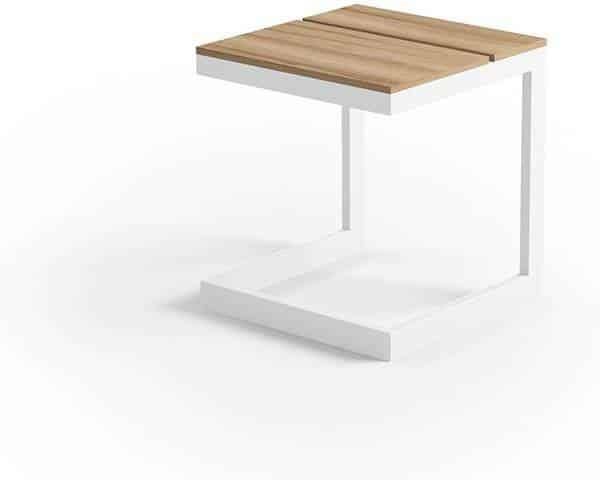 Zgrabny stolikGRENADA TEAKw kolorze białym z drewnianym blatem z drewna tekowego. Idealnie nadaje się w niewielkie tarasy i ogrody. Stolik zbudowanyz aluminium malowanego proszkowo. Jego konstrukcja pozwala na idealne wsunięcie go pod leżak, fotel czy postawienie koło huśtawki. Wysokogatunkowy metal jest odporny na uszkodzenia mechaniczne i czynniki zewnętrzne. Drewno tekowe to surowiec, który nie chłonie wody, odporny jest na środki chemiczne, ostre słońce i zarysowania.Drewno połączone z metalem nadaje nieoczywistego charakteru. Przed pierwszym użytkowaniem zaleca się olejowanie (2-3 krotne olejowaniem olejem bezbarwnym do mebli ogrodowych) elementów drewnianych mebli, aby utrwalić kolor drewna . Olejowanie może spowodować chwilową zmianę koloru drewna na bardziej intensywny, z czasem odzyska pierwotny kolor.