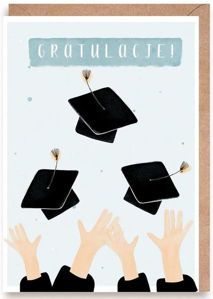 Szukasz doskonałego prezentu na zakończenie studiów? Ta wyjątkowa kartka ""ZAKOŃCZENIE STUDIÓW graduacja"" będzie idealnym upominkiem dla absolwentów. Nasz produkt to nie tylko elegancka kartka, ale także wyraz wdzięczności i gratulacji. Zaprojektowana z dbałością o szczegóły, kartka zachwyca swoją oryginalnością. Na przedniej stronie kartki znajduje się wzór z motywem biretów, który dodaje uroku. Wnętrze kartki jest puste po to, aby zamieścić osobiste życzenia i wyrazy uznania dla absolwenta. SZCZEGÓŁY: PAPIER: satynowy, o gramaturze 300g. Wyprodukowany zgodnie z normami FSC(R) ROZMIAR: A6 | 105 x 148mm KOPERTA: ekologiczna, brązowa o gramaturze 100g. ŚRODEK: pusty, z miejscem na Wasze wyjątkowe słowa PAKOWANIE: Zapakowana w przezroczysty woreczek, który chroni przed wilgocią i zabrudzeniem.