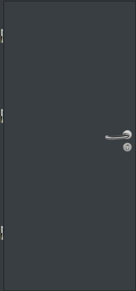 Drzwi zewnętrzne techniczne STAL 40 antracyt Zestaw klamek i okuć w kolorze INOX w komplecie z drzwiami! Wymiar: 90 cm (światło przejścia), szerokość całkowita ościeżnicy: 995 mm, wysokość ościeżnicy przy gotowej podłodze: 2070 mm. Kierunek otwierania: prawe Skrzydło: o grubości 40 mm z trójstronną przylgą. Wykonane z ocynkowanej blachy laminowanej o grubości 0,5 mm. Wypełnienie: polistyren spieniony. Ościeżnica: stalowa symteryczna FD-25/21/N/O. Wykonana z blachy o grubości 1 - 1,2 mm. Malowana w kolorze skrzydła. Zawias płytkowy Z2. Zamek dolny. Wraz z drzwiami otrzymają Państwo wkładkę na klucz!