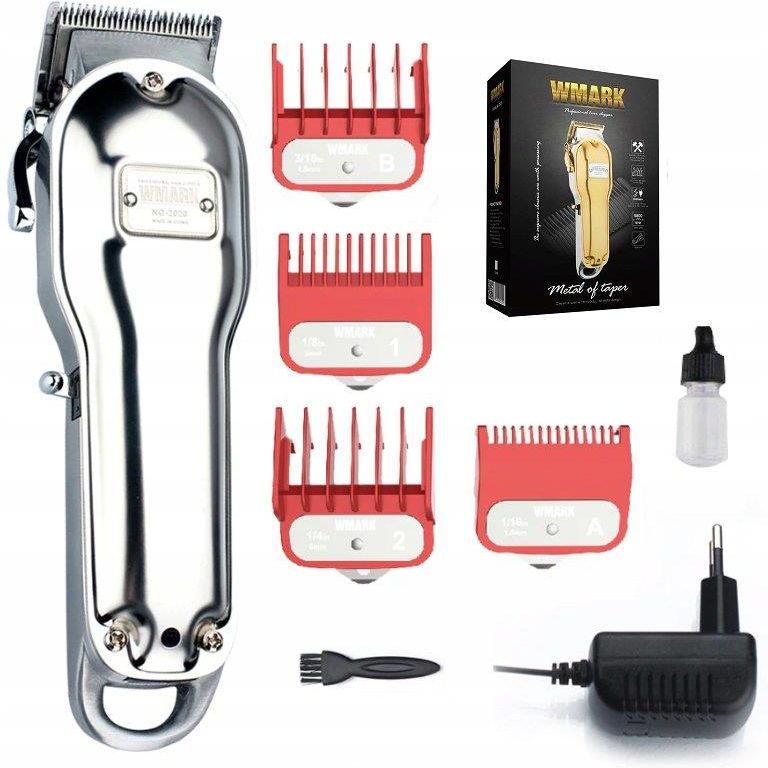 Profesjonalna stalowa maszynka do strzyżenia włosów Od dziś skrócisz włosy lub brodę bez wychodzenia z domu - w szybki i bardzo łatwy sposób! Maszynka została wyposażona w specjalną dźwignię za pomocą której precyzyjnie ustawisz długość strzyżenia włosów. Metalowa maszynka do włosów WMARK, posiada nierdzewne ostrza, pojemną baterię pozwalającą na około 240 minut pracy, oraz otwór do odwieszenia na hak. Maszynka w kolorze srebrnym. Cechy produktu W całości wykonana z metalu Bateria 2500 mAh Otwór do odwieszenia na hak Prędkość silnika 5800 RPM Lampka LED - wskazuje stan baterii Srebrna maszynka w ze złotymi zdobieniami, przypadnie do gustu zarówno mężczyznom, jak i kobietom. Akcesoria 4 wymienne grzebienie (1.5, 3 ,4.5,6 mm) + osłonka Opakowanie do przechowywania sprzętu Olejek oraz pędzelek do czyszczenia ostrzy Ładowarka sieciowa Parametry Napięcie: 230V/50Hz Moc: 10W Waga: 370 g Wymiary 6 cm x 18,5 cm Zapraszamy do zapoznania się z naszymi ofertami urządzeń do strzyżenia i trymerów.