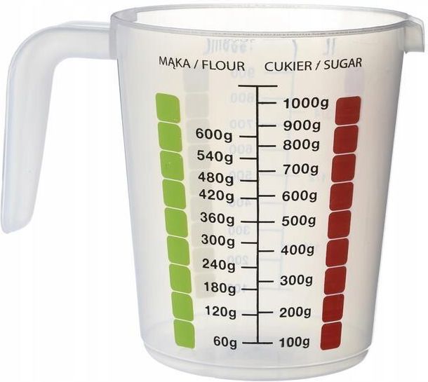 Miarka kuchenna dzbanek z miarką plastikowy 1 l Dzbanek kuchenny z miarką to niezbędny produkt w każdej kuchni. Przyda się do odmierzania produktów płynnych, jak i sypkich. Posiada dziubek ułatwiający przelewanie płynów oraz wygodny, wyprofilowany uchwyt. Wykonana z wysokiej jakości tworzywa …