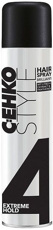 CEHKO Lakier do włosów EXTREME HOLD 4 Bardzo Mocny 400ml CEHKO Lakier do włosów EXTREME HOLD 4 - 400ml C:Ehko Lakier ultra mocne utrwalenie do każdego rodzaju fryzury. Lakier do włosów Diamond z ulepszoną formułą do stylizacji zapewnia długotrwałe naturalne trzymanie nie pozostawiając białego osadu …