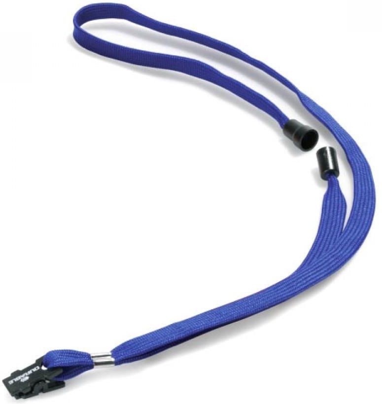 Taśma tekstylna Durable o szerokości 10 mm z odpięciem zabezpieczającym, które otwiera się przy mocnym szarpnięciu. Taśma może być przypięta za pomocą karabińczyka do wszystkich identyfikatorów Durable, wyposażonych w wycięcie na klip lub agrafkę. Długość taśmy: 44 cm