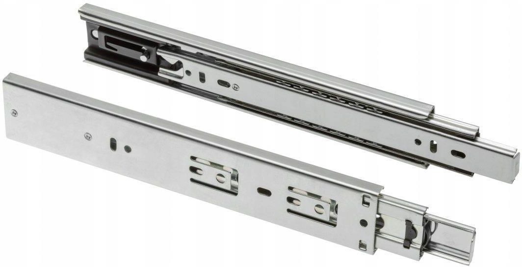 Prowadnica kulkowa H45 GTV PRESTIGE pełnego wysuwu z samodociągiem Cechy produktu Producent: GTV Materiał: stal Kolor: ocynk Długość: 500 mm Wysokość: 44,5 mm Grubość: 12.7 mm Udźwig: 35 kg Prowadnica kulkowa pełnego wysuwu Funkcja samodociągu Opcja wypięcie prowadnika z prowadnicy Uniwersalne zastosowanie do szuflad z frontem wpuszczanym jak i nakładanym W zestawie komplet prowadnic (P+L) na jedną szufladę Prowadnica kulkowa H45 PRESTIGE z samodociągiem znajdzie swoje uniwersalne zastosowanie do szuflad z frontem wpuszczanym jak i nakładanym. Pasuje do każdego typu szuflad – wąskich, szerokich, kuchennych, biurowych i warsztatowych. Należy pamiętać, że dla prawidłowego działania szuflady jej szerokość nie powinna przekraczać długości nominalnej prowadnicy. Została wykonana ze stali pokrytej powłoką cynkową zabezpieczającą przed korozją. Funkcja pełnego wysuwu umożliwia wygodny dostęp do pełnej zawartości szuflady, a mechanizm samodociągu usprawnia proces zamykania szuflady. Prowadnica posiada również opcje wypięcia prowadnika z prowadnicy. Wytrzymuje obciążenie do 35 kg.