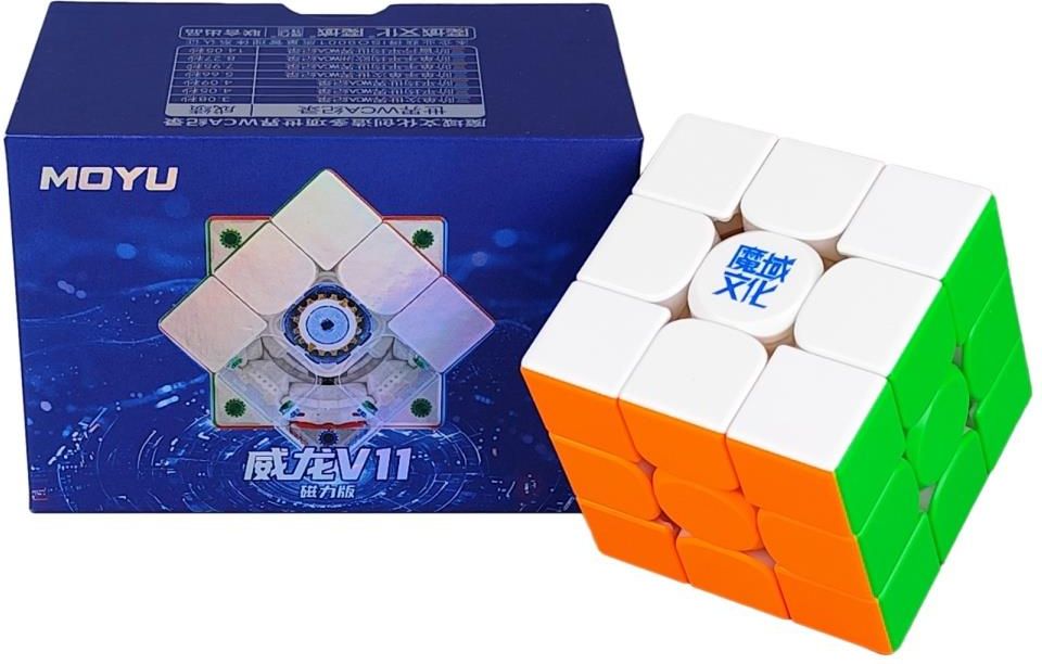 MoYu WeiLong V11 Magnetic 3x3 V11 Magnetic to najtańsza wersja flagowej 3x3 od MoYu z 2025 roku. Kostka jest już 11 generacja legendarnej serii WeiLong. Kostka ma identyczny mechanizm wewnętrzny co poprzednik - V10 - ale wyróżnia się magnesami zamontowanymi w kapsułkach, co ma pozytywny wpływ na niższe opory przy poruszaniu. Podstawowa wersja posiada tylko pojedynczy zestaw 48 magnesów między rogami i krawędziami, ale przychodzi wyposażona w najnowszy system podwójnej regulacji od MoYu. Poruszanie jest niezwykle lekkie i płynne bezpośrednio po wyjęciu z pudełka.