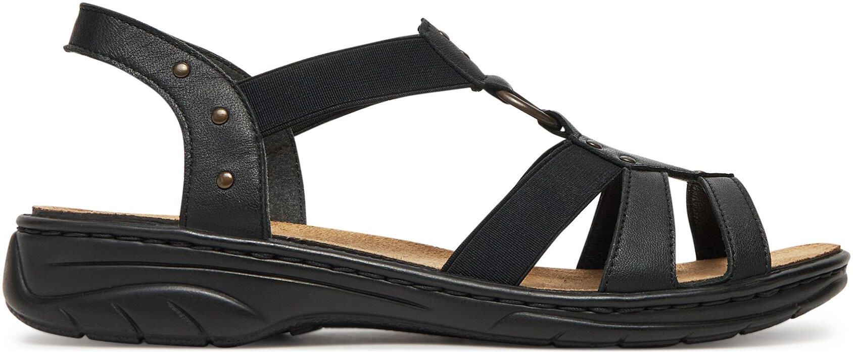 Odkryj niezwykłe czarne sandały marki Rieker, które łączą w sobie elegancję i wyjątkowy komfort! Wykonane z wysokiej jakości skóry, te buty zapewniają trwałość i styl, idealnie komponując się z różnorodnymi letnimi stylizacjami. Dzięki zastosowanej technologii Rieker Antistress, każde Twoje kroki będą lekkie i wygodne, eliminując uczucie zmęczenia nawet po całym dniu noszenia. Te sandały to doskonały wybór dla kobiet, ceniących sobie połączenie klasyki z nowoczesnym podejściem do komfortu. Nie czekaj, dodaj je do swojej garderoby i ciesz się niezrównanym komfortem każdego dnia! Od ponad stu lat marka Rieker oferuje niezwykle komfortowe i trwałe obuwie, które powstaje z myślą o zdrowiu stóp. Dzięki wieloletniemu doświadczeniu w produkcji obuwia, ta niemiecka marka doskonale potrafi łączyć wygodę ze stylem, dlatego w ofercie znajdziesz buty w modnych, oryginalnych fasonach, które każdemu przypadną do gustu. Buty Rieker tworzone są z materiałów wysokiej jakości, przez co odznaczają się wyjątkową elastycznością i trwałością, ale też lekkością. Ponadto w obuwiu stosuje się szerszą formę zapewniającą odpowiednią stabilizację stopy, specjalne podeszwy absorbujące wstrząsy oraz odciążające stawy i kręgosłup, a także wyjmowane wkładki z pianki Memory Foam, która idealnie dopasowuje się do kształtu stóp. To doskonałe produkty dla tych, którzy ponad wszystko cenią sobie komfort. Przekonaj się!