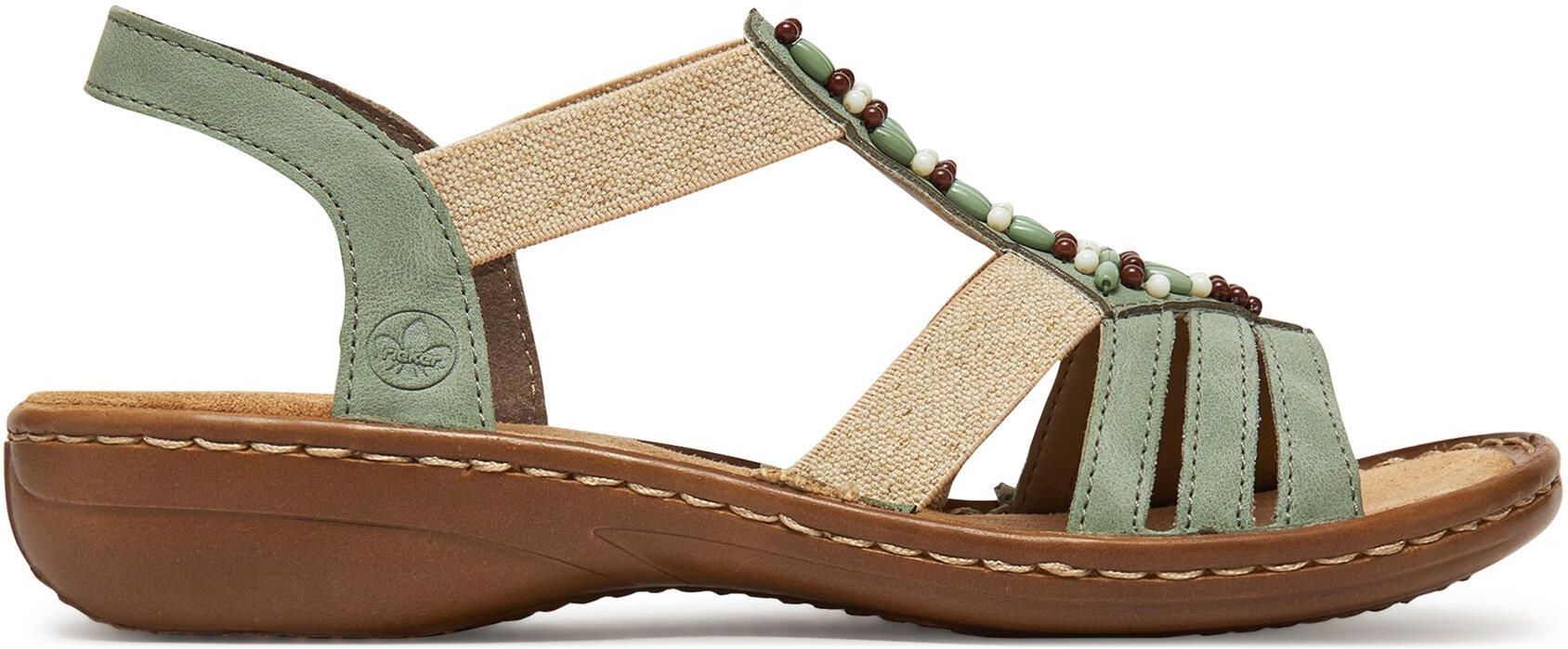 Sandały marki Rieker to idealny wybór na letnie dni, łączący w sobie komfort i styl. Utrzymane w modnym jasnozielonym kolorze, wykonane z wysokogatunkowego tworzywa syntetycznego, doskonale dopasowują się do kształtu stopy dzięki gumowemu klinowi w cholewce. Ozdobione subtelnymi koralikami, dodają uroku każdej stylizacji. Technologia Rieker Antistress zapewnia niezrównany komfort noszenia, redukując zmęczenie stóp nawet podczas długiego dnia. Te sandały to must-have dla każdej kobiety, ceniącej wygodę i modny wygląd. Od ponad stu lat marka Rieker oferuje niezwykle komfortowe i trwałe obuwie, które powstaje z myślą o zdrowiu stóp. Dzięki wieloletniemu doświadczeniu w produkcji obuwia, ta niemiecka marka doskonale potrafi łączyć wygodę ze stylem, dlatego w ofercie znajdziesz buty w modnych, oryginalnych fasonach, które każdemu przypadną do gustu. Buty Rieker tworzone są z materiałów wysokiej jakości, przez co odznaczają się wyjątkową elastycznością i trwałością, ale też lekkością. Ponadto w obuwiu stosuje się szerszą formę zapewniającą odpowiednią stabilizację stopy, specjalne podeszwy absorbujące wstrząsy oraz odciążające stawy i kręgosłup, a także wyjmowane wkładki z pianki Memory Foam, która idealnie dopasowuje się do kształtu stóp. To doskonałe produkty dla tych, którzy ponad wszystko cenią sobie komfort. Przekonaj się!