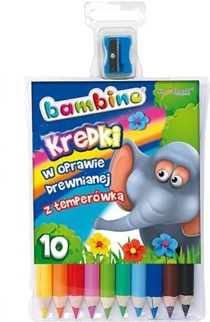 Kredki ołówkowe Bambino 10 kolorów z temperówką ❤️ ST-Majewski ❤️ ✔️ Kredki BAMBINO w oprawie drewnianej z temperówką, 10 kolorów. Wysokiej jakości kredki z glinki kaolinowej w drewnianej oprawie. Charakteryzują się wyjątkowo intensywnymi i nasyconymi kolorami. Doskonale kryją, idealnie nadają się …