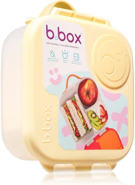 B.BOX LUNCHBOX MINI ŚNIADANIÓWKA POJEMNIK Z PRZEGRODAMI 1000ml 3m+ BB00737 Marka: B.BOX Symbol: BB00737 Kolor: Odcienie żółtego i złota Materiał: PP i silikon; Pojemność: 1 l Rodzaj: Śniadaniówka Mini lunchbox b.box dla dzieci ma dwie szczelne przegródki w tym jedną flex przeznaczoną na całe owoce. …
