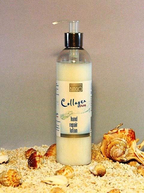 Kolagenowe mleczko do mycia rąk BINGOSPA o kremowej konsystencji i orzeźwiającym zapachu zawiera kolagen oraz ekstrakt z alg morskich. Kolagen wspomaga regenerację skóry dłoni, pomaga utrzymać jej elastyczność skóry, łagodzi tworzy na powierzchni skóry właściwej film zatrzymujący wilgoć. Kolagenowe mleczko do mycia rąk BINGOSPA nawilża i regeneruje, wspomaga odbudowę zniszczonego naskórka oraz wygładza i zmiękcza skórę. Ekstrakt z alg wykorzystując bogactwo zawartych substancji aktywnych zawierających aminokwasy, cukry i minerały, pomaga zachować właściwy poziom nawilżenia powierzchniowego skóry oraz chronią skórę przed działaniem wolnych rodników. Dzięki zawartym składnikom, mleczko BINGOSPA tworzy na skórze dłoni delikatny film chroniący przed niesprzyjającymi czynnikami zewnętrznymi. Pojemność 300 ml
