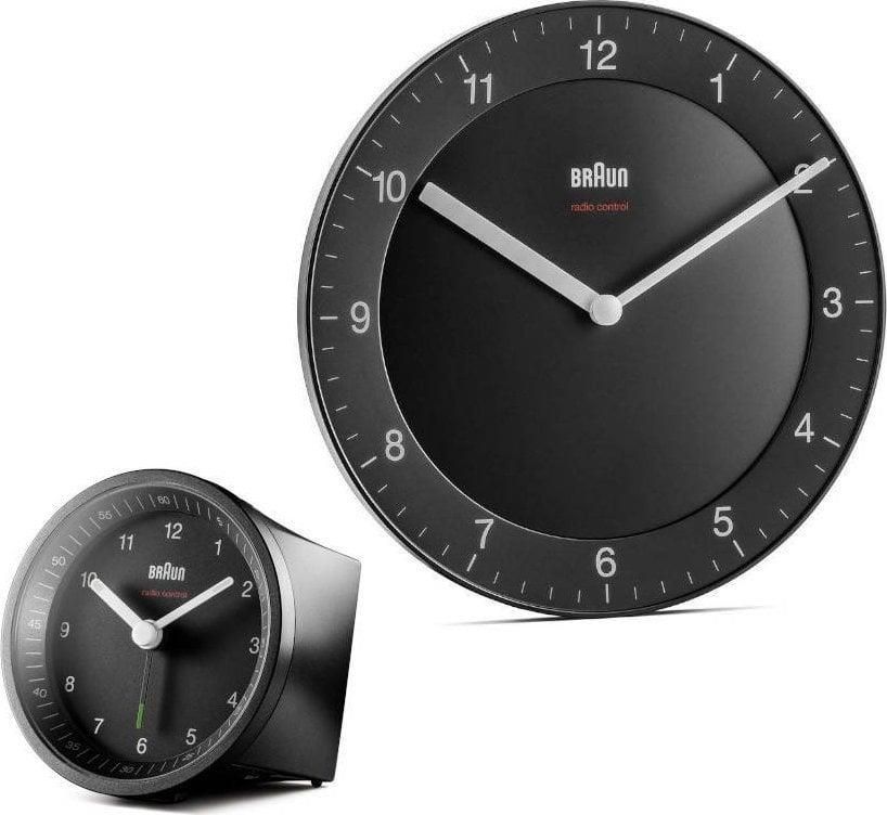 Klasyczny zegar i budzik radio controlled BRAUN BC06B-RC i BC07BK-RC - cichy mechanizm sterowany radiowo, wersja europejska GMT+1, czarna matowa obudowa, czarna tarcza.