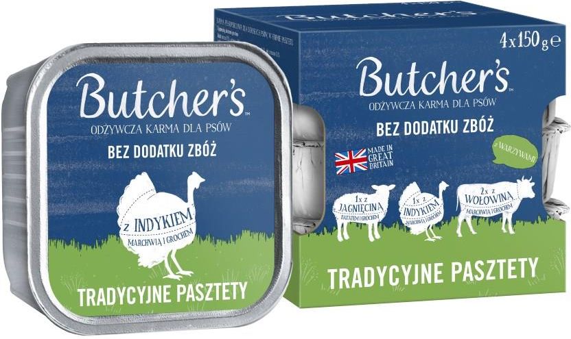 Butcher's Original Tradycyjne pasztety, karma dla psa, mix smaków z warzywami, pasztety 4x150 g Krasnystaw