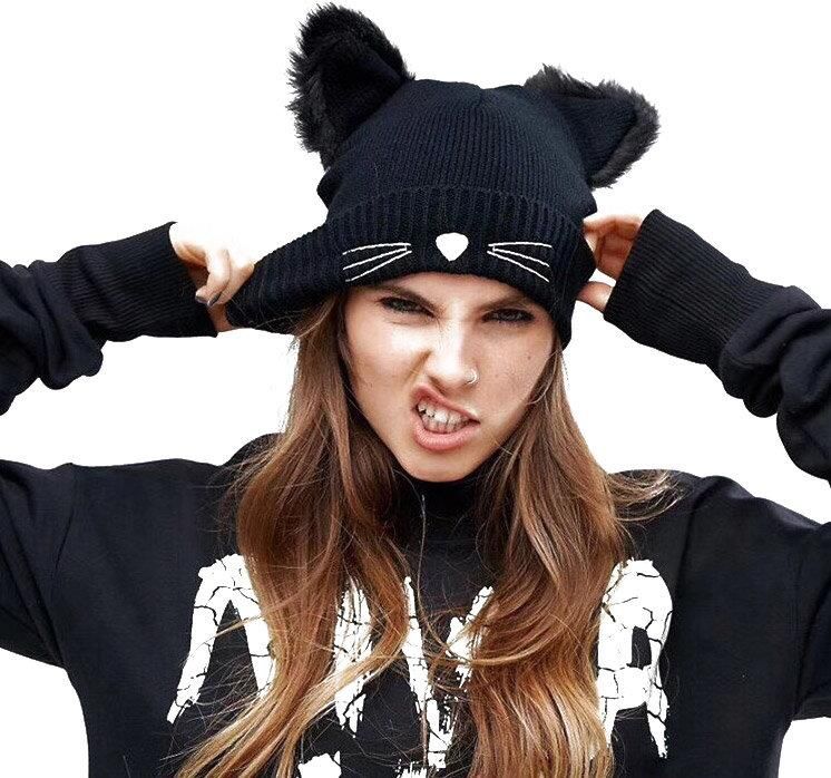CZAPKA zimowa KOCIE USZY damska ciepła kot MŁODZIEŻOWA