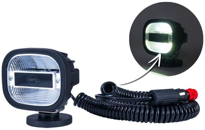 Lampa robocza LRD 3070 HOR 142 z uchwytem i wtyczką do zapalniczki marki HORPOL, ma moc 10 W i generuje 1200 lumenów. Wyposażona w 6 diod LED, idealnie sprawdza się w maszynach rolniczych, budowlanych i pojazdach użytkowych.