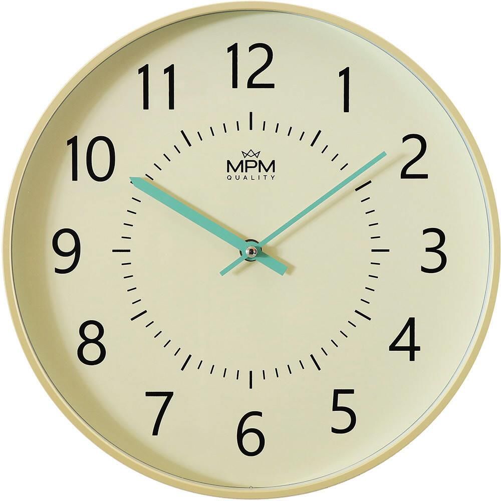 Czytelny okrągły klasyczny zegar ścienny MPM E01.4428.01 w obudowie z tworzywa. Mechanizm kwarcowy cichy. Średnica 31 cm. Zegar do pokoju, salonu, sypialni, biura