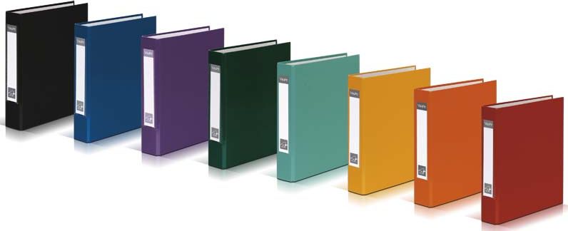 Segregator VauPe A5/40/4R, wykonany z twardej 1,8mm tektury kolorowa oklejka pokryta folią polipropylenową z połyskiem wyklejka papierowa do formatu A5 mechanizm ringowy o wysokości 25 mm na 4 zaczepy wymienna etykieta do opisu