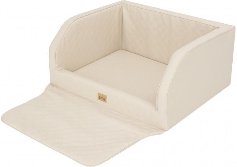 Legowisko turystyczne - ADVENTURE - do przewozu zwierząt w samochodzie i nie tylko ... Cechy produktu Kolor: Beżowa Ekoskóra, Rozmiar 2: 100x80x39 cm Chroni bagażnik samochodu przed zabrudzeniami oraz sierścią, Łatwy montaż, Waga: ok 3,4 kg, Kraj produkcji: POLSKA, Łatwość w czyszczeniu, Możliwość prania (zleca się ręcznie w temp. 30 st. C), Uniwersalność: produktu można używać w samochodzie, w domu na kanapie oraz może pełnić funkcje legowiska. Opis Transporter ADVENTURE - to stylowy transporter do przewozu małych, średnich jak i dużych psów oraz kotów i innych zwierząt domowych. Zapewni twojemu pupilowi komfort i bezpieczeństwo w trakcie podroży. Nasze produkty są wytwarzane z wysokojakościowych komponentów i materiałów. Transporter pasuje idealnie do bagażników o minimalnym rozmiarze 70x92 cm i większych. Instalacja jest niezwykle prosta, wystarczy położyć go w kufrze auta. Nie trzeba nic mocować ani wiązać. CECHY PRODUKTU WIELOFUNKCYJNOŚĆ - Transporter Adventure może zostać użyty do przewozu zwierząt w bagażniku. Można go również używać jak zwyczajne legowisko. ŁATWOŚĆ W UTRZYMANIU CZYSTOŚCI - do usunięcia większości plam wystarczy wilgotna ściereczka. W razie potrzeby można łatwo ściągnąć pokrowiec i wyprać go w 30° C - najlepiej ręcznie. ŁATWA I SZYBKA INSTALACJA - kanapę wystarczy położyć w bagażniku. CHRONI PRZED ZABRUDZENIAMI - nasz produkt skutecznie chroni bagażnik auta przed zabrudzeniami i zarysowaniami, gwarantują to grube wysokie boki, oraz język, który chroni karoserię podczas wchodzenia i wychodzenia. UNIWERSALNNY - pasuje do większości typów samochodów, w każdym standardzie: Kombi, SUV, hatchback, sedan i wiele innych. Fotelik został wykonany z następujących materiałów EKOSÓRA - miękka i przyjemna w dotyku, gwarantuje nieprzemakalność, szeroko stosowana do produkcji mebli. PIANKA POLIURETANOWA - pianka w bloczkach, taka sama jest wykorzystywana do produkcji mebli. WŁÓKNINA POLIPROPYLENOWA - czarna tkanina tworząca spód produktu, jest do pewnego stopnia jest nieprzemakalny. Wymiary Transporter pasuje do większości aut. Został przeznaczony praktycznie do wszystkich wielkości postów jak i kotów. Pies typu Labrador lub Owczarek Niemiecki bez problemu zmieści się do naszego produktu. Przykłady samochodów do których pasuje nasz produkt pasuje do: VW Passat Kombi pasuje do: VW Golf 7 Variant, pasuje do:: VW Golf 6 Variant, pasuje do: Merceded C-Klasa Kombi i wiele innych