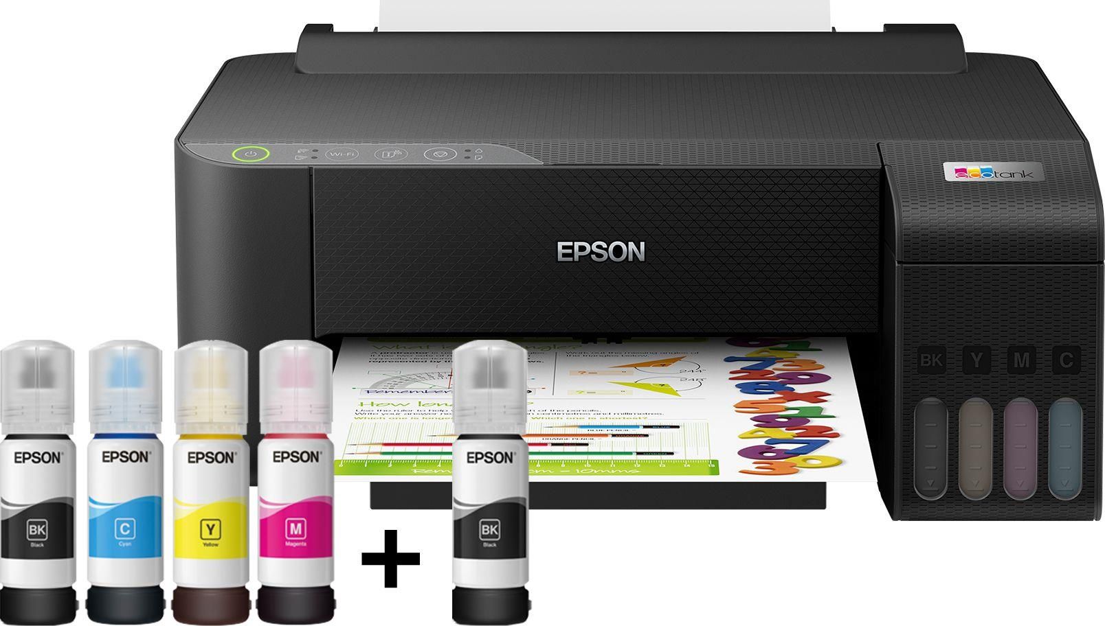 Rozdzielczość druku w czerni wynosząca 5760 x 1440 dpi Rozdzielczość druku jest jednym z najważniejszych parametrów informującym o szczegółowości wydruków. Określana jest w jednostkach dpi, czyli w liczbie punktów obrazu przypadających na cal. Szczegółowość rośnie wraz w większą liczbą dpi. Przykładowo do drukowania dokumentów wystarczająca jest rozdzielczość 600 x 600 dpi, natomiast do drukowania zdjęć minimalna rozdzielczość wynosi 1200 x 1200 dpi. Epson L1250 Oszczędzaj do 90% na kosztach druku dzięki drukarkom EcoTank bez kartridży firmy Epson. Wbudowane pojemniki na atrament są łatwe do napełniania dzięki specjalnie zaprojektowanym, wysoce wydajnym butelkom z atramentem. Ze względu na brak kartridży do wymiany i różnorodne opcje łączności jest to idealna drukarka dla wszystkich osób wymagających wysokiej jakości druku przy nieprawdopodobnie niskim koszcie wydruku strony. Pożegnaj kartridże Bezproblemowe drukowanie w domu – pojemniki na atrament o dużej pojemności można uzupełniać bez bałaganu, a butelki z blokadą zaprojektowano tak, aby dany kolor atramentu można było wlać tylko do odpowiadającego mu pojemnika. Nieustanne oszczędzanie Ta ekonomiczna drukarka pozwala zaoszczędzić do 90% na kosztach druku1 i zawiera w zestawie atrament wystarczający nawet na 3 lata. Dołączony atrament pozwala wydrukować do 8100 stron w czerni i 6500 stron w kolorze. Zamienne butelki z atramentem stanowią równowartość 66 kartridży. Nowoczesna i wszechstronna Urządzenie można z łatwością zintegrować z istniejącą infrastrukturą domową i drukować z telefonów komórkowych, tabletów czy laptopów. Ponadto aplikacja Epson Smart panel pozwala sterować drukarką za pomocą urządzenia inteligentnego. Drukuj dokumenty i zdjęcia, konfiguruj, monitoruj i rozwiązuj problemy z poziomu telefonu lub tabletu. Mnóstwo funkcji Tylny podajnik papieru na 100 arkuszy, drukowanie zdjęć bez obramowania (do formatu 10 x 15 cm) i szybkość drukowania do 10 stron na minutę ułatwiają wykonywanie różnych zadań.