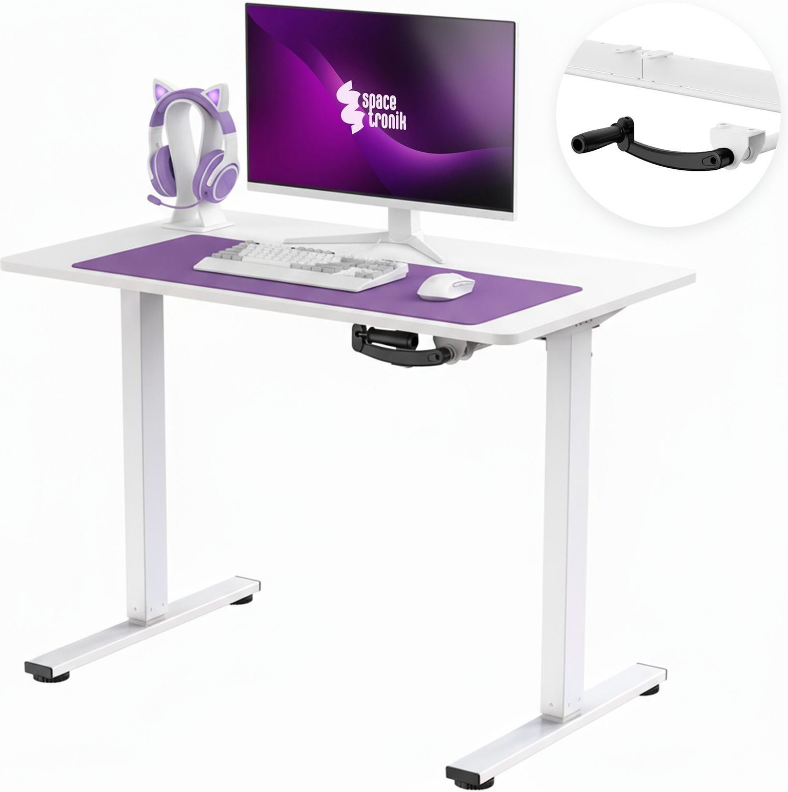 Manualne biurko z regulacją wysokości Spacetronik SPE-O113. Ustaw je w zakresie 72 -109,5 cm, z prędkością 8 mm/obrót. Kolor biały, udźwig maksymalny 40 kg. Pracuj wygodnie z dużym blatem 100×60 cm.