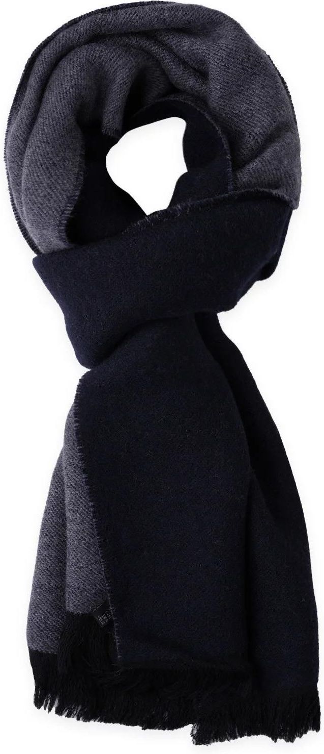 Szal wełniany Elegancki szal w uniwersalnych kolorach. Urozmaici każdą koszulę, kurtkę czy płaszcz. Zakończony krótkimi frędzlami. Kolor: granatowy, szary Tkanina: 100% wełna Długość: 175 cm Szerokość: 38 cm Gwarancja: 24 m-ce