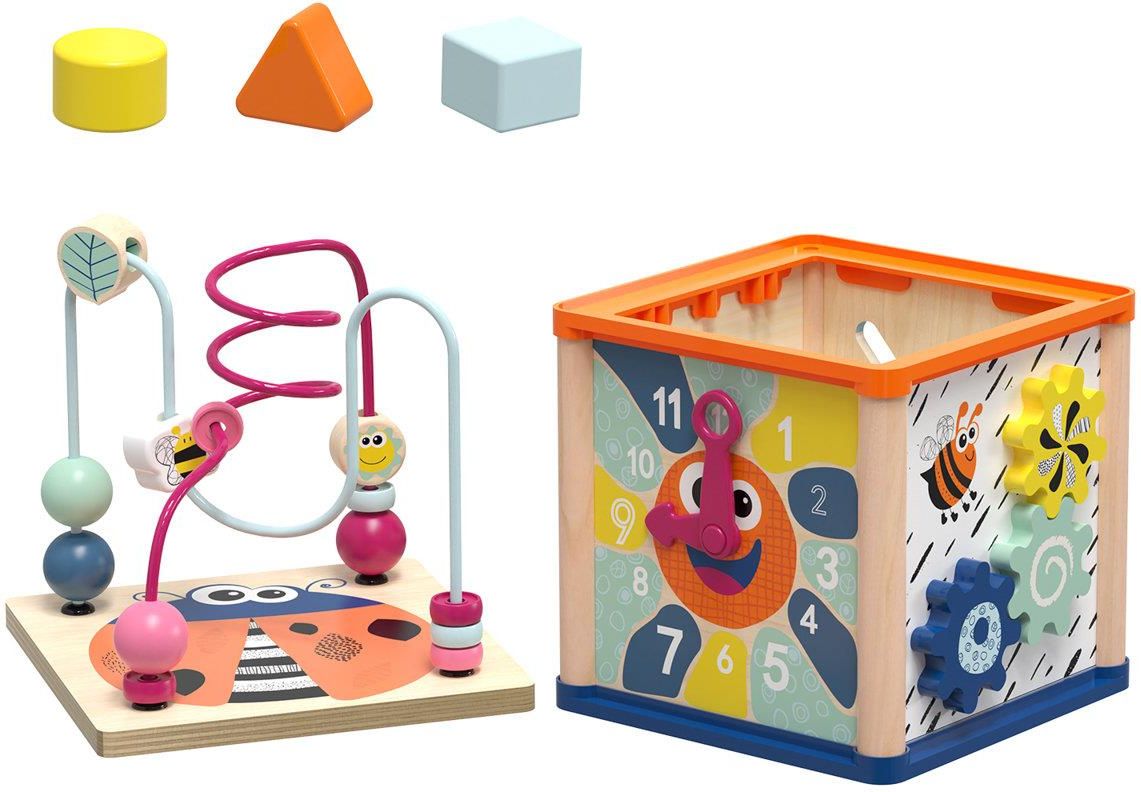 Dane techniczne Numer katalogowy: 5133879 Materiał: Drewno, Metal Kolor: Multicolor Wiek dziecka: 12 M + Wymiary: Długość: 15,5 cm, Szerokość: 15,5 cm, Wysokość: 28,5 cm Waga: 0,98 kg Zestaw zawiera: Nową, oryginalną kostkę EDUKACYJNĄ od firmy TOP BRIGHT, nasz firmowy kalendarzyk Kostka motoryczna oferuje zabawę na wiele możliwości. Stylowy wygląd kostki w modnych kolorach zachęca niemowlęta i małe dzieci do zabawy i nauki. Dzięki stylowemu wzornictwu i szerokiej gamie kontrastujących wzorów w czerni i bieli wspiera rozwój wizualny dzieci. Wszechstronne centrum zabaw obejmuje wyjmowany labirynt koralików, grę w sortowanie, zegar z ruchomymi wskazówkami i interaktywne przekładnie. Dzięki dużemu wyborowi kształtów, kolorów i ruchów kostka motoryczna zachęca do samodzielnej zabawy, a jednocześnie promuje koordynację ręka-oko, wyobraźnię, kreatywność oraz rozpoznawanie kolorów i kształtów.