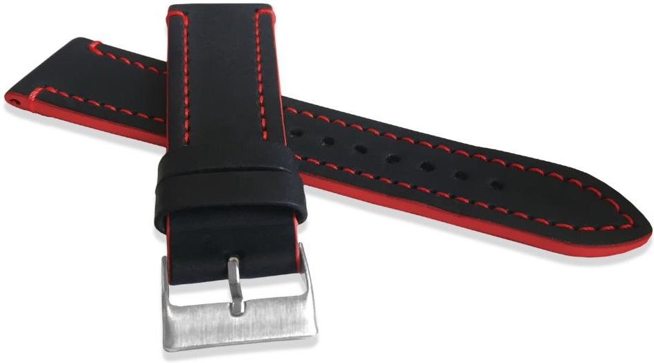 Hiszpańska skóra "Top Grain", z której wykonany jest ten pasek, jest często określana jako najlepsza skóra na świecie. Podczas gdy powszechnie dostępne paski skórzane zawierają jedynie sprasowane dolne warstwy skóry (tzw. "Genuine Leather"), w przypadku skóry "Top Grain" wybierane są jedynie najdelikatniejsze i najbardziej wytrzymałe części górnej skóry. Są one następnie cięte na precyzyjne kawałki, barwione organicznie przy użyciu naturalnych barwników i zszywane bawełnianą nicią, aby nadać im sportowy charakter. W słonecznej Hiszpanii, dzięki tej precyzyjnej pracy ręcznej powstają wyjątkowe, trwałe i giętkie paski z najlepszych na świecie materiałów, gotowe nadać Twojemu zegarkowi niepowtarzalny i luksusowy wygląd. Pasek / Bransoleta: Rodzaj - PASEK Materiał - SKÓRA NATURALNA Struktura - GŁADKI z przeszyciem w kolorze czerwonym Kolor - CZARNY Mocowanie - UNIWERSALNE Zapięcie: Rodzaj - KLAMERKA Materiał - STAL NIERDZEWNA Kolor - SREBRNY Szerokość: przy mocowaniu - 24mm przy klamerce - 22mm Długość: część z klamerką - 75mm* część z dziurkami - 115mm* obwód maksymalny - 170mm* obwód minimalny - 130mm* *Zaokrąglenie pomiarów ( 0,5mm)