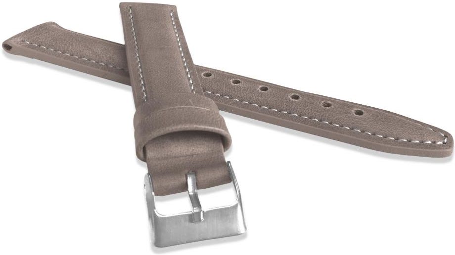 Hiszpańska skóra "Top Grain", z której wykonany jest ten pasek, jest często określana jako najlepsza skóra na świecie. Podczas gdy powszechnie dostępne paski skórzane zawierają jedynie sprasowane dolne warstwy skóry (tzw. "Genuine Leather"), w przypadku skóry "Top Grain" wybierane są jedynie najdelikatniejsze i najbardziej wytrzymałe części górnej skóry. Są one następnie cięte na precyzyjne kawałki, barwione organicznie przy użyciu naturalnych barwników i zszywane bawełnianą nicią, aby nadać im sportowy charakter. W słonecznej Hiszpanii, dzięki tej precyzyjnej pracy ręcznej powstają wyjątkowe, trwałe i giętkie paski z najlepszych na świecie materiałów, gotowe nadać Twojemu zegarkowi niepowtarzalny i luksusowy wygląd. Pasek / Bransoleta: Rodzaj - PASEK Materiał - SKÓRA NATURALNA Struktura - GŁADKI z przeszyciem w kolorze białym Kolor - BEŻOWY Mocowanie - UNIWERSALNE Zapięcie: Rodzaj - KLAMERKA Materiał - STAL NIERDZEWNA Kolor - SREBRNY Szerokość: przy mocowaniu - 20mm przy klamerce - 18mm Długość*: część z klamerką - 75mm część z dziurkami - 115mm obwód maksymalny - 170mm obwód minimalny - 130mm *Zaokrąglenie pomiarów ( 5mm ; +/-2mmΔX)