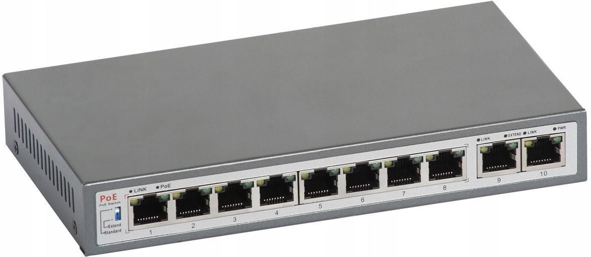 Switch PoE ULTIPOWER 00108afat 802.3af/at Kod towaru: 00108AFAT Switch PoE ULTIPOWER 00108afat 802.3af/at 110W 10x RJ45 (8xPoE) Switch PoE ULTIPOWER 00108afat to urządzenie typu desktop zapewniające płynną transmisję sieciową. Umożliwia nawiązywanie połączeń z prędkością 10 i 100Mb/s. Posiada 10 portów RJ45 wspierających automatyczną negocjację szybkości połączeń. 8 z nich obsługują funkcję Power over Ethernet (PoE). Switch automatycznie wykrywa urządzenia PD działające w standardzie IEEE 802.3af lub 802.3at i zaopatruje je w zasilanie. Pozwala to rozszerzyć zasięg sieci w miejscach, w których nie ma dostępu do gniazd lub linii zasilających, a gdzie istnieje potrzeba umieszczenia punktów dostępowych, kamer IP, telefonów IP, itp. Maksymalna sumaryczna moc zasilanych urządzeń nie może przekraczać 110 W. Cechy wyróżniające 10 portów 10/100 Mb/s 8 porty PoE, transfer danych i zasilanie urządzenia przy wykorzystaniu jednego kabla, Nie jest wymagany montaż ani konfiguracja urządzenia, Zasilanie PoE do 30 W dla każdego portu PoE Maksymalna sumaryczna moc zasilanych urządzeń 110 W Obsługa urządzeń zasilanych PoE, działających zgodnie ze standardem IEEE802.3af/at Obsługa funkcji auto-learning i auto-aging adresów MAC (tablica wielkości 1K) Diody LED informujące o stanie i prędkości połączenia, jego aktywności oraz o zasilaniu Funkcja Extended umożliwiająca zasilanie urządzeń połączonych skrętką o długości do 250 m. 802.3af a 802.3at Najpopularniejszy standard zasilania PoE 802.3af stosowany jest np. w kamerach IP. Umożliwia on zasilanie urządzeń napięciem od 44 do 57 V przy maksymalnej mocy 15,4 W. Standard 802.3at umożliwia zasilanie urządzeń o napięciu wejściowym 50 - 57 V i mocy nieprzekraczającej 25,5 W. Przykładowymi urządzeniami zasilanymi za pomocą standardu 802.3at są: drukarki, obrotowe kamery IP obrotowe oraz switche. Parametry techniczne Nazwa:ULTIPOWER 00108afat Standardy i protokoły: IEEE802.3, 802.3u, 802.3ab, 802.3x CSMA/CD, TCP/IP Szybkość przekierowań: 10BASE-T: 14880pps/port; 100BASE-TX: 148800pps/port; Metoda transmisji: Store-and-Forward Porty: 10 portów RJ45 10/100Mb/s (automatyczna negocjacja szybkości połączeń, automatyczne krosowanie Auto MDI/MDIX), w tym 8 porty PoE Okablowanie sieciowe:10Base-T: Kabel UTP kat. 3, 4 lub 5 (do 100m); Kabel STP EIA/TIA-568 100Ω (do 100m); 100Base-Tx: Kabel UTP kat. 5, lub 5e (do 100m); Kabel STP EIA/TIA-568 100Ω (do 100m); W trybie Extended kat.5e 250 m; Wskaźniki LED: Power, Link/Act, 100M, PoE Status, Extended Certyfikaty: CE Wymiary [mm]: 190x107x30 Środowisko pracy: Dopuszczalna temperatura pracy: 0...40℃; Dopuszczalna temperatura przechowywania: -40...70℃; Dopuszczalna wilgotność powietrza: 10...90%, niekondensująca; Dopuszczalna wilgotność przechowywania: 5...90%, niekondensująca; Zasilanie: AC 230 V / 52 V 2,5A Inne: Zgodność z urządzeniami zasilanymi PoE (PD) działającymi w standardzie IEEE 802.3af/at; Obsługa funkcji auto-learning i auto-aging adresów MAC; Wsparcie standardu kontroli przepustowości dla trybu pełnego dupleksu (IEEE802.3x) oraz funkcji back pressure dla trybu pół dupleksu; Funkcja Extended;