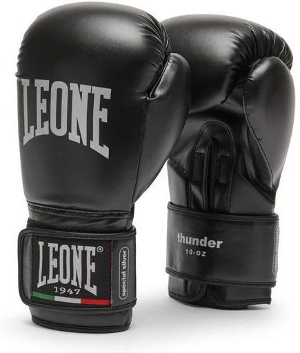 Leone Rękawice Bokserskie kolekcja THUNDER w klasycznej czerni z subtelnymi kolorami Włoch na mankiecie Rękawica Thunder to prosta i funkcjonalna rękawica z wstępnie uformowaną wyściółką i zapięciem na rzep. Jest idealnym towarzyszem dla amatorów, którzy po raz pierwszy stykają się ze sportami ringowymi. Charakterystyka: Mocna skóra syntetyczna Zapięcie na rzep z podtrzymaniem nadgarstka Siatka wentylacyjna w wewnętrznej części