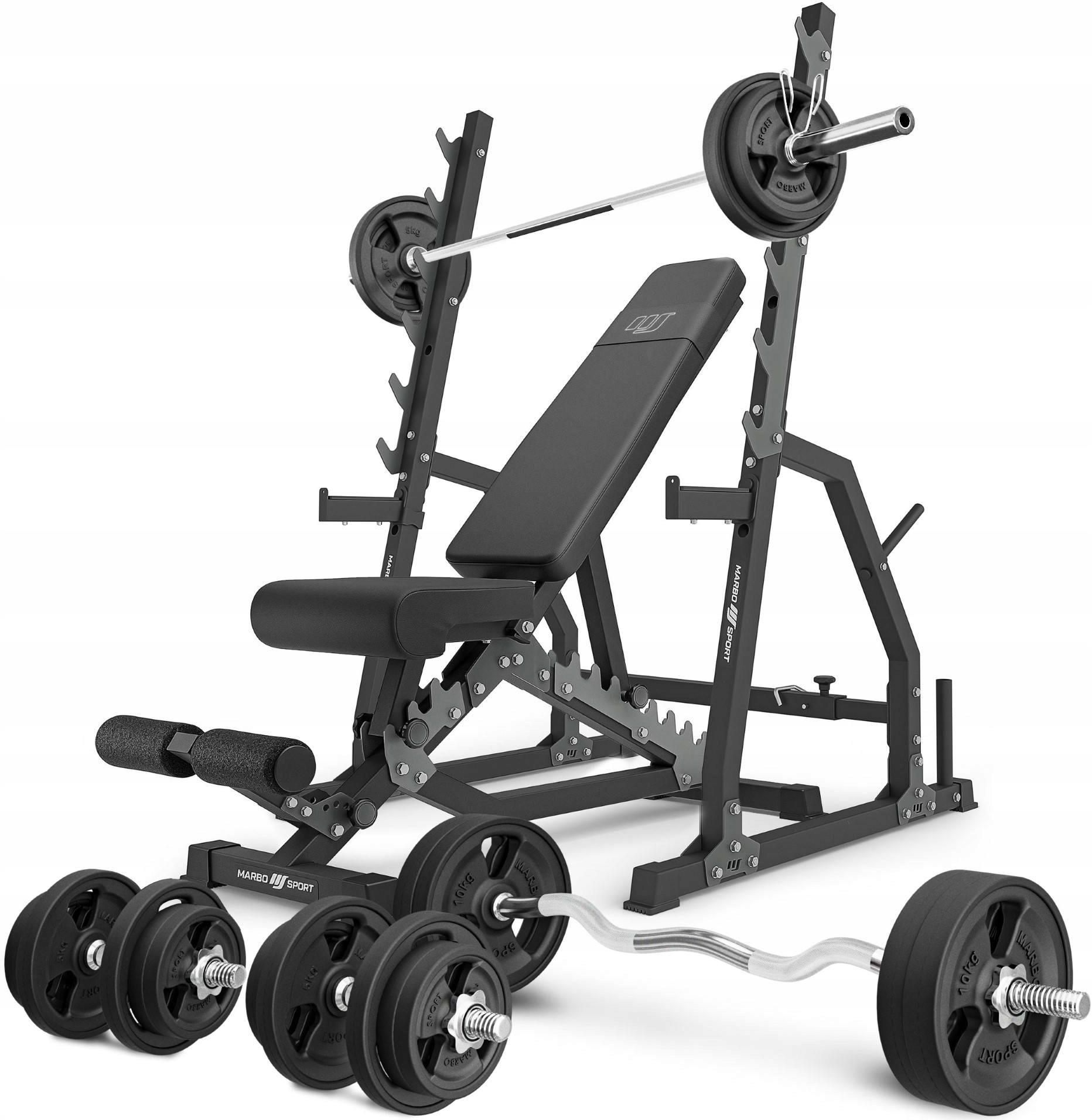 Zestaw MS3_2.0_113KG_G | Ławka dwustronna + stojaki bramowe z asekuracją + zestaw gryfów i obciążeń gumowanych 113 kg - Marbo Sport Zawartość zestawu: Ławka dwustronna MS-L101 2.0 Stojaki bramowe z asekuracją MS-S107 2.0 Gryf prosty 30 mm 198 cm wzmocniony chromowany MW-G198-EX-GL Gryf lekko łamany …