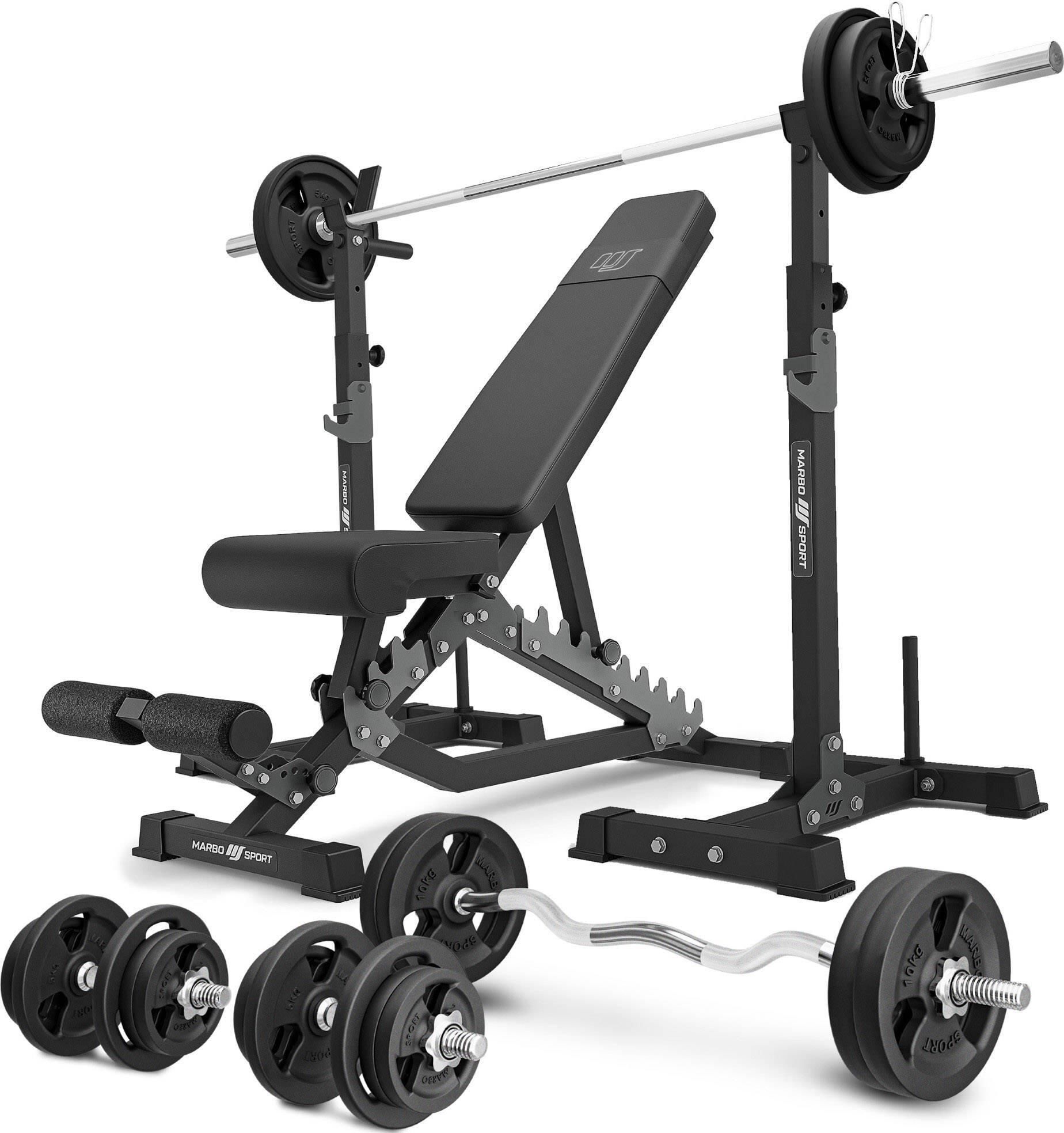 Zestaw do treningu siłowego Marbo Sport ławka regulowana i dodatkowe akcesoria