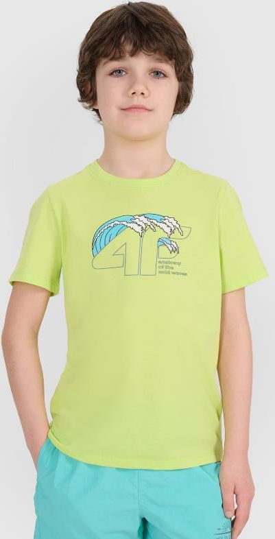 4F t-shirt bawełniany koszulka chłopięca 4FJWSS25TTSHM1917 zielona, kolor: zielony, rozmiar: 164 Krosno