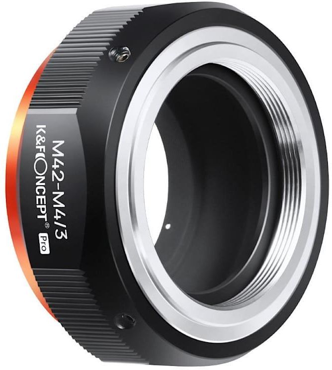 Adapter bagnetowy K&F Concept umożliwiający podpięcie obiektywów z mocowaniem M42 do aparatów z bagnetem Micro 4/3 (m4/3) Olympus, Panasonic oraz Panasonic Lumix. Precyzyjnie wykonany i dopasowany. Nie powoduje refleksów, a także umożliwia ostrzenie w pełnym zakresie ogniskowej – również na nieskończoność.