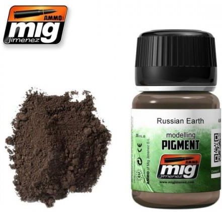 Ammo by Mig: Modelling Pigment - Russian Earth (35 ml) Ammo: Modelling Pigment to wysokiej jakości drobnoziarnisty pigment wykonany z naturalnych składników, przeznaczony wyłącznie do użytku w malowaniu figurek, dioram.