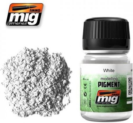 Ammo by Mig: Modelling Pigment - White (35 ml) Ammo: Modelling Pigment to wysokiej jakości drobnoziarnisty pigment wykonany z naturalnych składników, przeznaczony wyłącznie do użytku w malowaniu figurek, dioram.