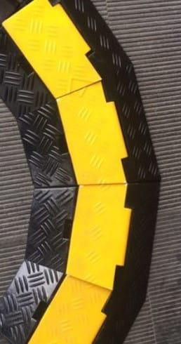 Najazd kablowy kątowy z dwoma kanałami jest idealnym rozwiązaniem w momencie, gdy potrzebujemy bezpiecznie zakryć leżące na wierzchu kable ułożone pod różnymi kątami. Niezależnie od miejsca i okoliczności, jeśli kable mogą być narażone na zadeptanie lub najechanie, należy je zabezpieczyć osłoną. Ochrona kabli na łuku 45 ° Najazd kablowy kątowy NK-2A pasuje do łączenia z najazdami NK-2 Dwukanałowy najazd kablowy kątowy NK-2A spełnia wszystkie wymagania potrzebne do profesjonalnej ochrony kabli i wszelkich przewodów. Zabezpiecza zarówno przed pojazdami mechanicznymi, jak i ruchem pieszym. Charakteryzuje się wysoką odpornością na uszkodzenia mechaniczne, ponieważ nośność progu wynosi aż 6 ton, więc bez problemu ochroni kable nawet przed większymi samochodami. Najazd jest także odporny na działanie benzyny, olejów i kwasów, co potwierdza jego wytrzymałość. Kolejne moduły można bez problemu łączyć na długich odcinkach, a najazd NK-2A, pod żółtą pokrywą, pozwala ochronić dwa przewody na raz. System łączenia polega na zasadzie wpust-wypust, a łączenie w kształcie litery "T" niweluje ryzyko przypadkowego rozłączenia się osłon przy użytkowaniu. Próg na kable ma wysoką skuteczność w sytuacjach, gdzie zachodzi potrzeba dokładnego zabezpieczenia, uporządkowania i ukrycia przewodów elektronicznych. Ze względu na niezwykłą odporność najazdu kablowego 2 kanałowego NK-2A, może być stosowany zarówno w halach przemysłowych, jak i na imprezach masowych. Znajdzie zastosowanie w każdej sytuacji. Jako bezpośredni dystrybutor wielu rodzajów najazdów kablowych, oferujemy konkurencyjne ceny i natychmiastowy czas realizacji. Wszystko dzięki magazynom znajdującym się na terenie Polski. Właściwości: długość: 42 cm szerokość: 24 cm wysokość: 4,5 cm ilość kanałów kablowych: 2 szerokość kanału kablowego:3,2 cm x 3,2 cm maksymalna średnica zew. kabli: do 30 mm waga: 1,8 kg nośność: w przybliżeniu 6 ton na oś temperatura pracy: -30°C do +60°C możliwość łączenia kilku najazdów otwór na dłoń ułatwiający przenoszenie Zastosowanie: targi ścieżki dla pieszych targowiska jarmarki warsztaty hale magazynowe centra handlowe domy handlowe itp. Bezpośredni dystrybutor Jesteśmy bezpośrednim dystrybutorem najazdów kablowych. Produkty znajdują się w naszym magazynie w Polsce w dużych ilościach, dzięki czemu możemy zaproponować konkurencyjną cenę oraz natychmiastowy czas realizacji.