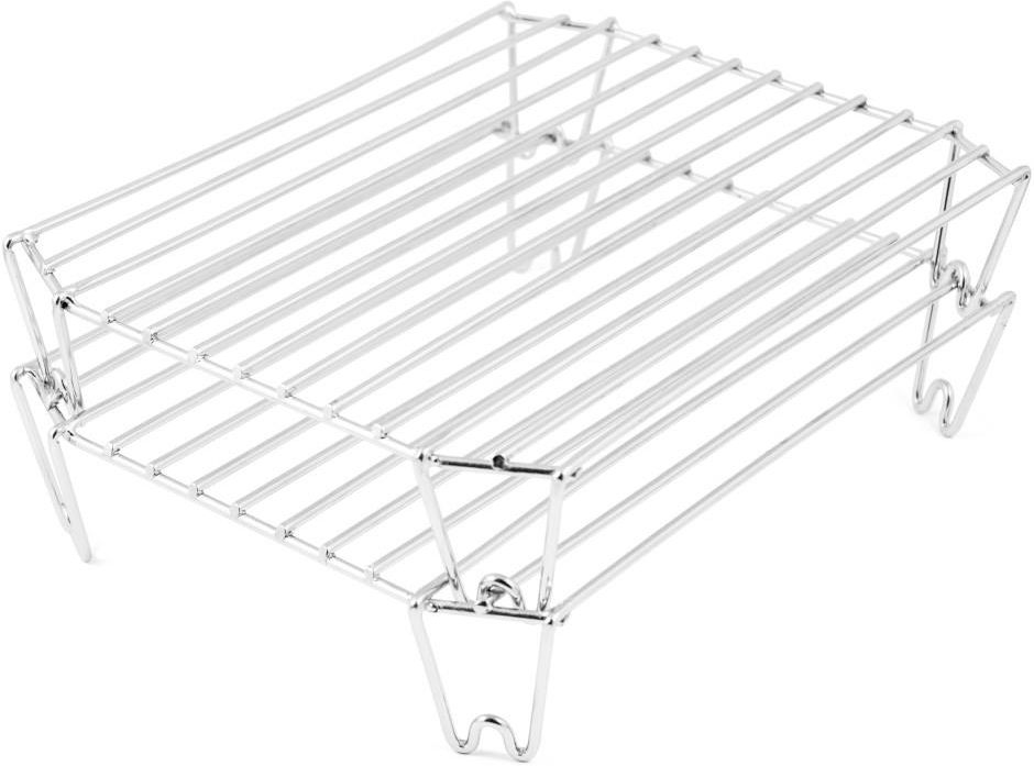 Grillowanie staje się łatwiejsze Stojak do pieczenia pośredniego Broil King pasuje do brytfanny ze stali szlachetnej (63106). Idealnie sprawdza się do przygotowania skrzydełek, podudzi czy żeberek. Dwupoziomowa konstrukcja pozwala na grillowanie dwóch potraw jednocześnie.