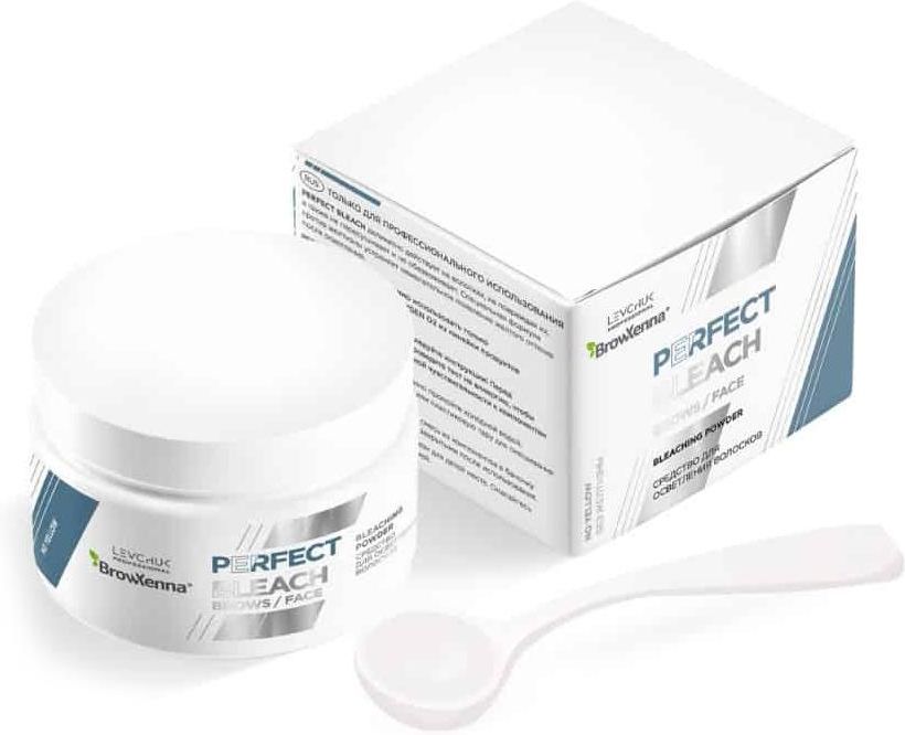 BrowXenna Perfect Bleach Puder Rozjaśniający Do Brwi i Twarzy 20g Puder Perfect Bleach jest przeznaczony do rozjaśnienia: ciemnych włosów na ciele i twarzy naturalnych brwi, których kolor znacznie różni się od koloru włosów zafarbowanych włosków brwi, jeśli ich kolor jest zbyt mocny i ciemny Do …