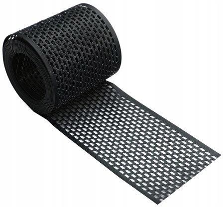 Siatka (kratka) okapowa / owadówka 100 mm - 5mb CZARNY Kratka okapowa wykonana z polimeru wysokiej jakości w technologii wytłaczania. Na całej swojej powierzchni posiada regularne otwory zapewniające odpowiednią wentylację zabezpieczanego obszaru. Występuje w kilku rozmiarach i kolorach co sprawia, że może być wykorzystywana do większości pokryć dachowych spotykanych na rynku. Zalety Zapewnia odpowiednią wentylację Odporny na promieniowanie UV Zabezpiecza okap przed ptactwem Stosowana jest do zabezpieczania wlotów wentylacyjnych w elewacjach budynków oraz obszaru okapu w dachach wentylowanych przed ptactwem, gryzoniami oraz insektami. Chroni zabezpieczany obszar przed nawiewaniem liści i innych zanieczyszczeń zapewniając tym samym odpowiednią wentylację i cyrkulację powietrza w obszarze elewacji i dachu. Nadaje się do stosowania do prawie wszystkich typów pokryć dachowych.