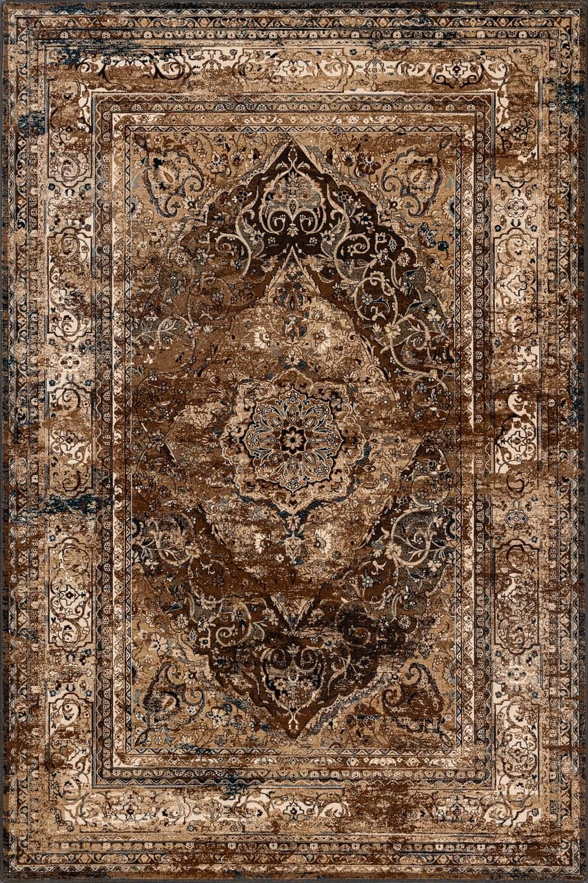 NURI Koniak 2 z kolekcji Superior - mistrzowskie połączenie brązów od czekolady po karmel z niebieskimi akcentami. Orientalny wzór z efektem vintage, gęstość 890400 pkt/m². 100% wełna nowozelandzka. Luksus i elegancja w każdym detalu!