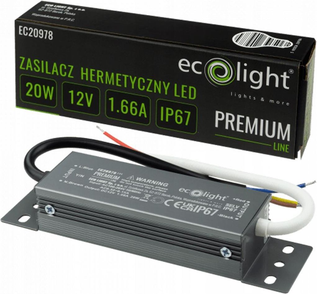 Ecolight Zasilacz LED hermetyczny DC12V 20W 1.66A PREMIUM (36209784) Krosno